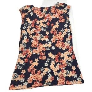 Loft Top LOT 2 Short Sleeve Ruffle T Shirt Floral Navy Blue Peach Tee Large Boho