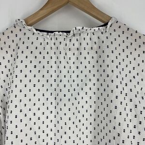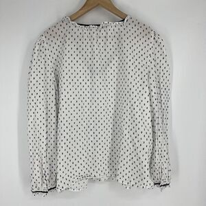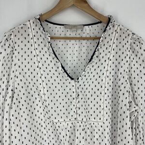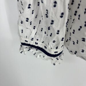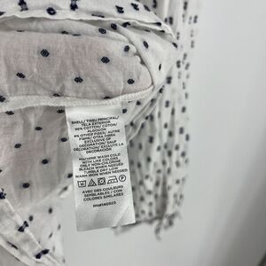 Loft Top Size XL Navy White Swiss Dot Shirt Popover Clip Ruffle Bib Blouse