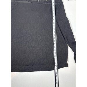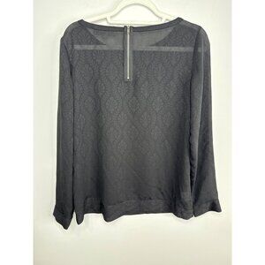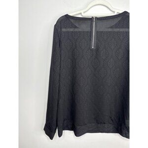 Loft Top Womens Black Long Sleeve Blouse Leaf Pattern Sheer Size S Romantic