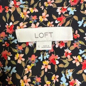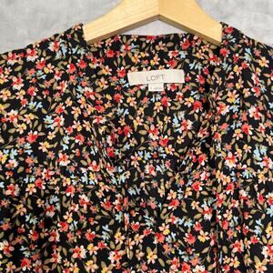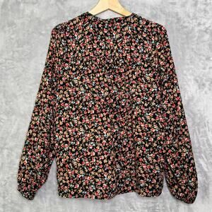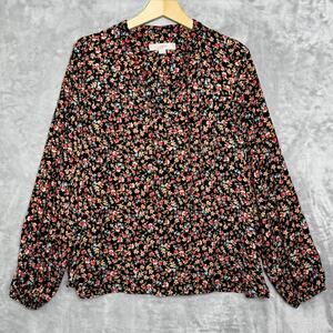 Loft Top Womens Large Black Ditsy Flower Print V Neck Long Balloon Sleeve Fall