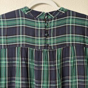 Loft Top Womens Size M Blue Green Plaid Long Sleeve Mock Neck Academia Preppy
