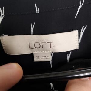 Elevate your wardrobe with this chic black Loft blouse, a versatile addition to any office attire or casual ensemble. Designed with a flattering round neck and long sleeves, this top offers a sophisticated silhouette that transitions seamlessly from day to night. The lightweight polyester material ensures comfort and ease of movement, making it an ideal choice for those who value both style and comfort.Featuring a discreet button closure and a subtle button accent on the sleeve, this blouse embodies a classic yet modern aesthetic. Available in size XS and tailored to a regular fit, it's a piece that promises to be a go-to in your collection, especially during the cooler seasons of fall, spring, and winter. Easy to care for, this machine-washable blouse is a practical and stylish choice for any occasion.