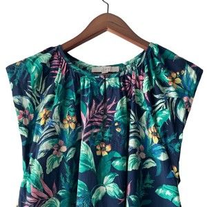 Loft Tropical Print Cap Sleeve Blouse Cotton Size M Green And Blue