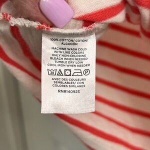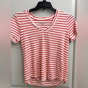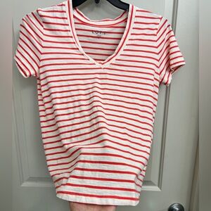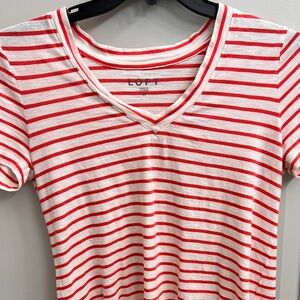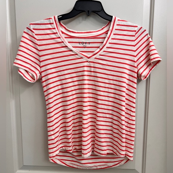 EUC, Loft Everyday Tee: orange striped V neck, no holes/stains/runs, P2P 18.5, length 22, machine wash and dry, bundle more to save!