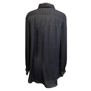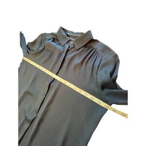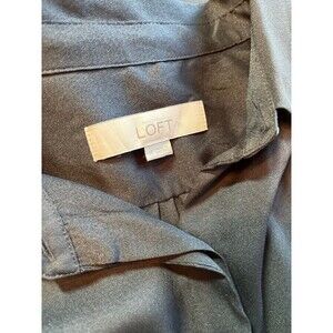Loft Tunic Shirt Black Popover Collared Long Sleeve Flowy Half Button Career M