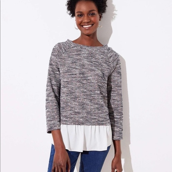 Loft Tweed Contrast Cotton Blend Pullover Top