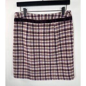 Loft Tweed Pleated Skirt Wool Blend Size 6 Purple Cream Plaid Mini