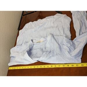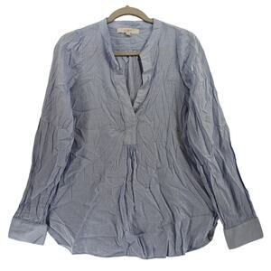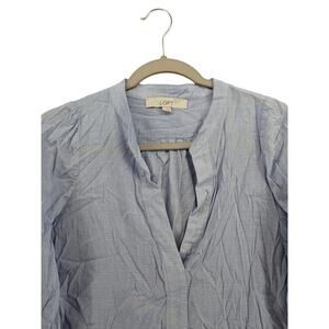 Loft VNeck Blouse L Blue Office Shirt Flowy Long Sleeve Workwear Office Loose