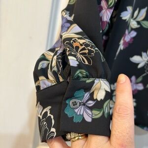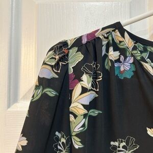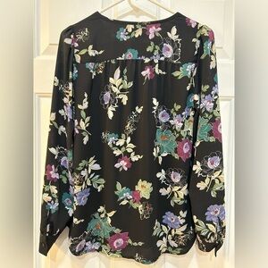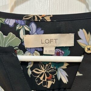 Loft V-Neck Floral Popover Blouse Slight Peasant Sleeve Size XS Oversized