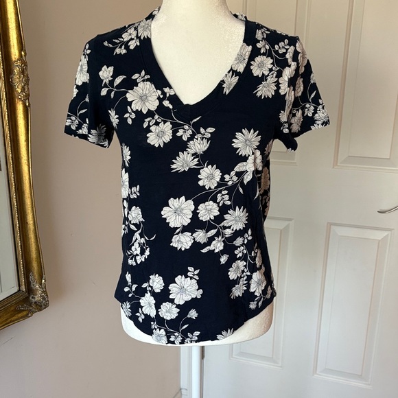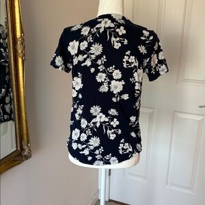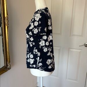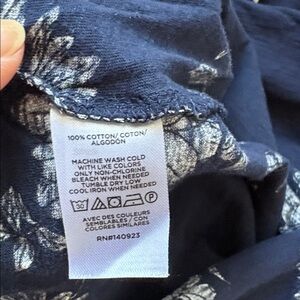 Excellent used condition. Worn 3 or 4 times. Short sleeves. Color is navy with off-white flowers.