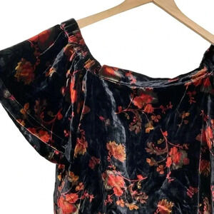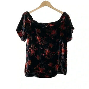 Loft Velvet Floral Short Sleeve Top Off Shoulder Size XS