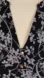 Flirty little dress is black with white vine/floral print. Dropped waist flutters into double tiered flounce skirt. Tab collared split neck with functional loop and button closure down the front to the waist. Dress is lined with semi-sheer long sleeves that have single button cuffs.