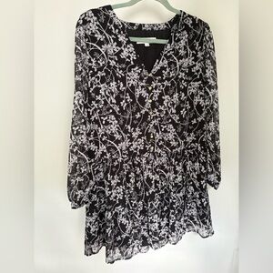 Loft Vine Drop Waist Split Neckline Button Lined Shirtdress small
