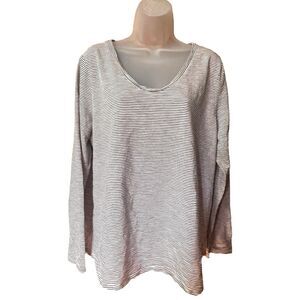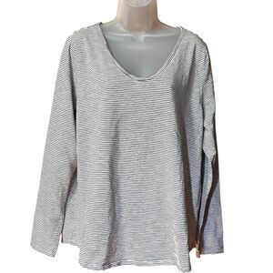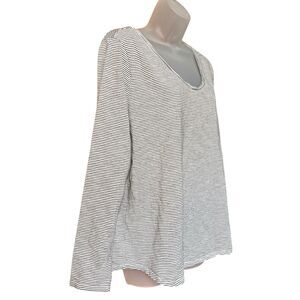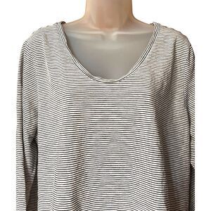 Loft Vintage Soft Black/Metallic Gold Stripe Long Sleeve Scoop Neck Top Sz XXL