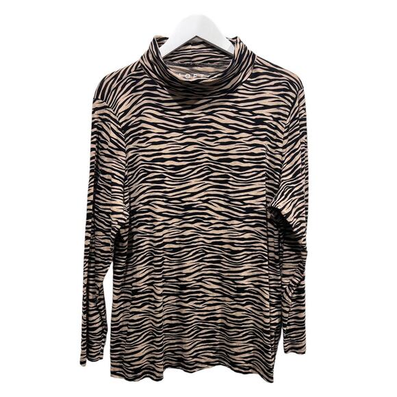 Loft Vintage Soft Turtleneck 16/18 Plus Cotton Brown Black Animal Print T-Shirt