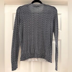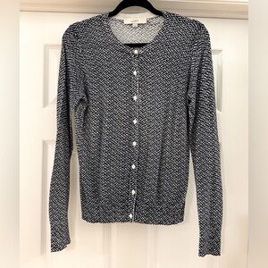 Loft Weave Print Crew Neck Cardigan Sweater Navy Blue White. Size small. Excellent condition. Very soft and lightweight.