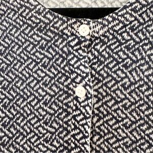 Loft Weave Print Crew Neck Cardigan Sweater Navy Blue White sz Small