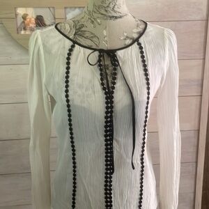 Loft White Black Boho Top XS