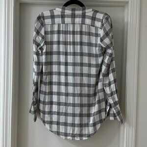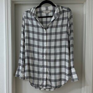 Loft White & Black Plaid Button Up Long-Sleeve Shirt, Size S