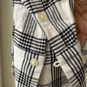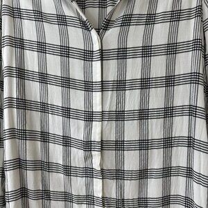 Classic white and black plaid button-up shirt with soft, breathable fabric. Quality Loft construction & fit