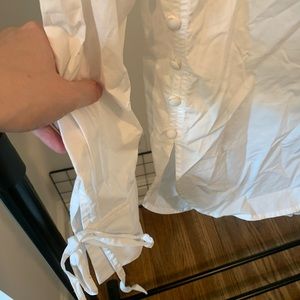 NWT - Collarless white button down. Has ties on cuff and non functional buttons going down the sides.