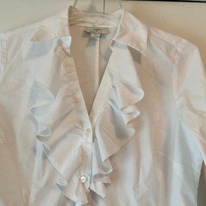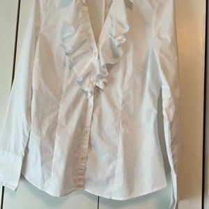 Loft White Button Down Front Ruffle Blouse - Size 10