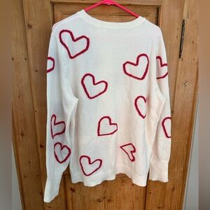 Loft White Crewneck W/Pink Hearts Very Soft & Cozy Romantic Feminine Suze XL