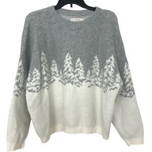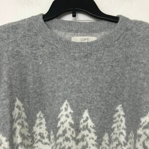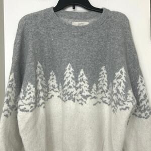 Loft White Gray Forest Sweater Wool Blend Small Cozy Holiday