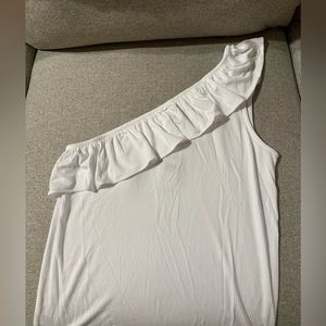 Women’s white one shoulder ruffled top. Very cute! Brand new with tags size large.