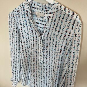 Loft White Tunic Blouse Multi Floral Long Sleeve Medium