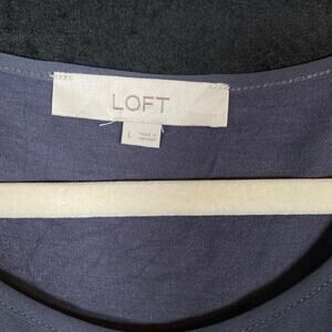 Loft Women Blouse Purple Gray Cold Shoulder Crew Neck Tie Bell Sleeve Large