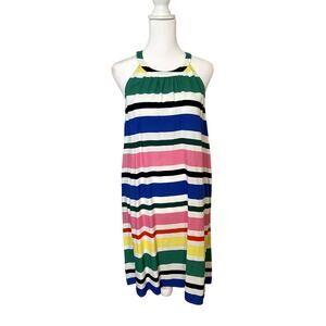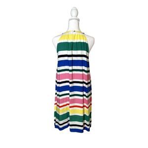 Loft Women Dress XS Multi-Color Striped High Neck Halter Apron A-Line Summer