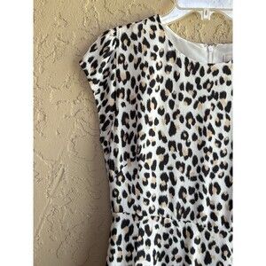 Loft Women Flutter Cap Sleeve Midi Dress White Leopard Print Sz 10 ZipBack Lined