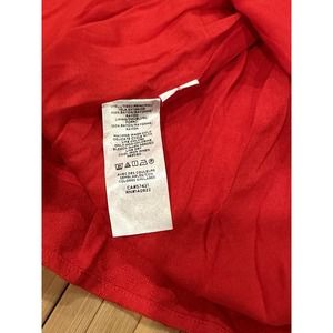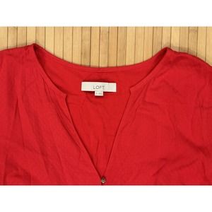 Loft Women Oversized Sz M Red Maxi Dress Tiered Textured Long Sleeve V Neck