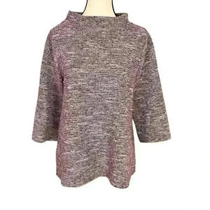Loft Women Sweater Size M Pink Boucle Tweed Knit 3/4 Sleeve Mock Turtleneck