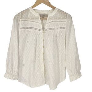 Loft Womens 100% Cotton Button-Up Chiffon Shirt Blouse Cream Size Small