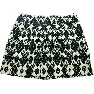 Loft Womens A Line Pleated Skirt in black and white geometric print with a back zip closure.