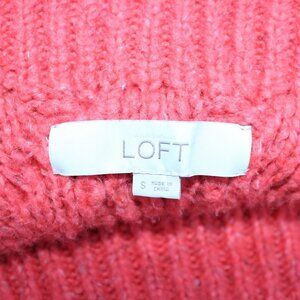 Loft Women’s All Over Chunky Knit Square Neck Coral Sweater, Size Small