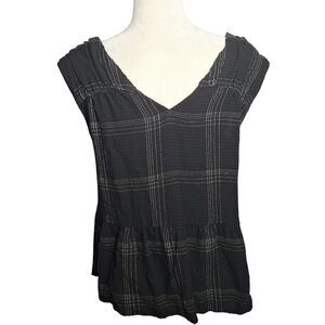 Loft Womens Babydoll Top Black Plaid Cap Sleeve Flowy Whimsigoth Small