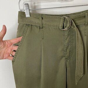Loft Women's Belted Emory Taper Pants XS Green Pleated High Rise Ankle Trousers