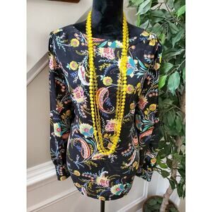 Loft Women's Black Floral 100% Polyester Round Neck Long Sleeve Blouse Size M
