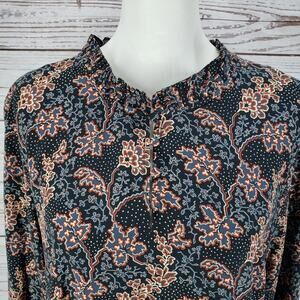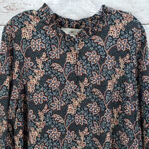 Loft Women's Black Floral Rayon Long Sleeve Dress Size Large Petite