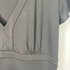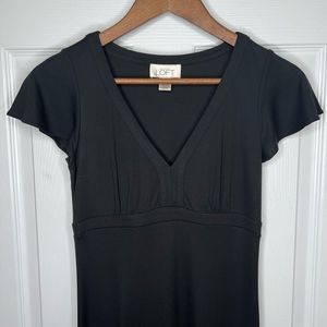 Loft Women's Black Flutter Cap Sleeve Side Zip V-Neck Midi Dress Size 0