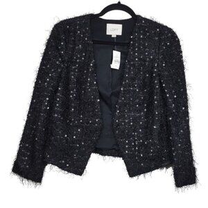 Loft Womens Black Fringe Sequin Open Front Blazer Jacket Size 4 NWT