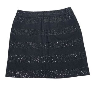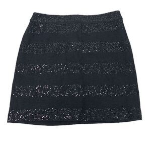 Loft Women's Black Sequin Stripe Mini Skirt size 6 Petite