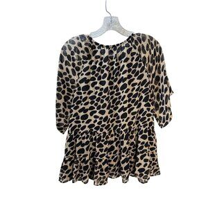 Loft Womens Black & Tan Leopard Print Tiered Top Button Front 3/4 Sleeves Size S