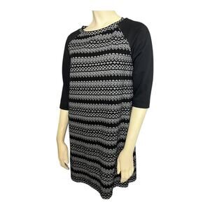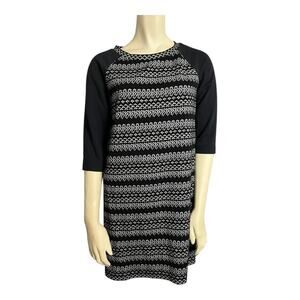 Loft Women's Black White Geometric Half Sleeve Career Dress Small Petite pencil