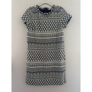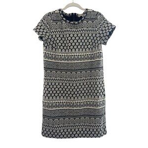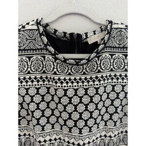 Loft Women’s Black White Monochrome Geometric Knit Dress Size Medium Zipper