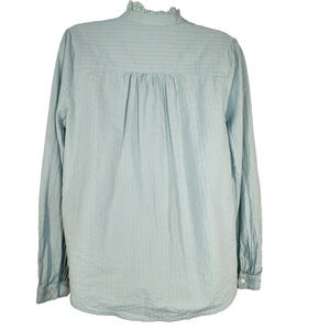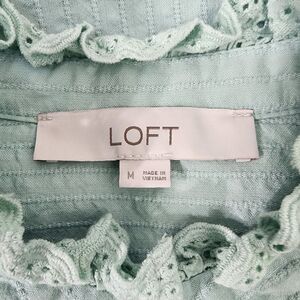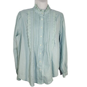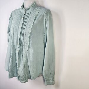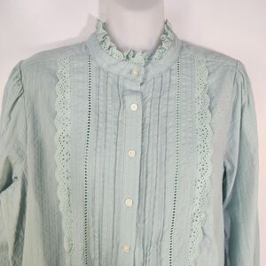 Loft Womens Blouse Medium Mint Green Lace Pleated Button Down Textured Long Slv