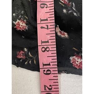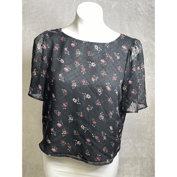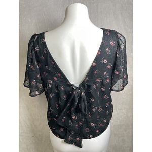 Loft Womens Blouse Size S Small Short Sleeve Black Floral Open Tie Back Lined